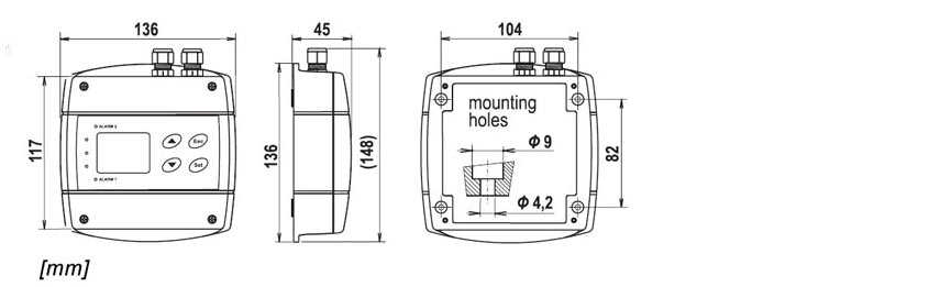 Für Wandmontage mit TCP/IP Schnittstelle und integrierten Web-Server. Per Relaiskontakt können vor Ort z.B. Be-/Entfeuchter angesteuert oder Alarme generiert werden. Über die 3 Binären Eingänge können z. B Türkontakte oder Bewegungsmelder mit erfasst werden. Die Messdaten für Temperatur, Feuchte und berechnete Werte (Taupunkt, Entalpie, g/kg, g/m³) lassen sich auf einer Web-Seite als Daten oder Kurven darstellen. Mit der optionalen Database Software lässt sich ein komplettes TCP/IP basiertes Monitoring System aufbauen.